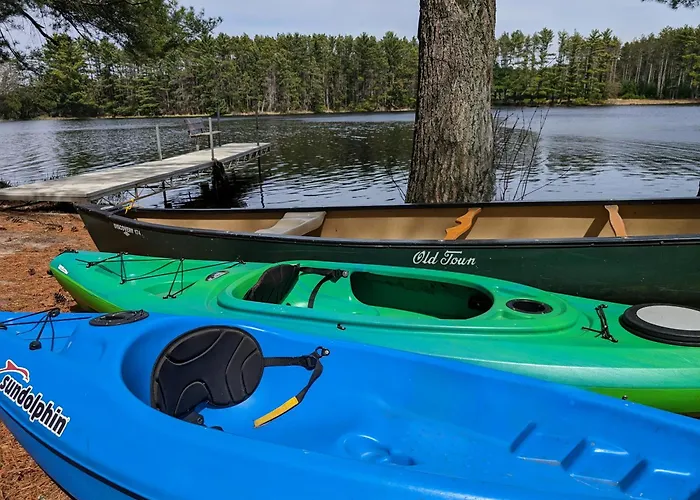 The villa also has a kitchen and 1 bathroom. Lakefront Log Cabin Wloft, Kayaks, Canoe, Ev includes 2 bedrooms.