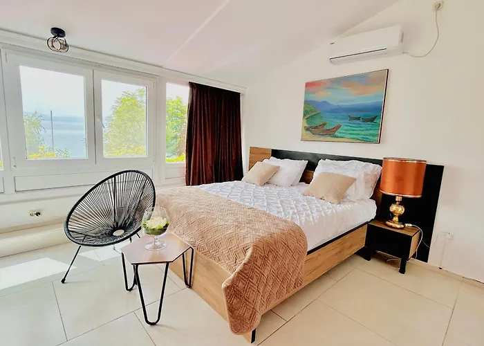 The accommodation is approximately 5 minutes by car from Biljanini Izvori Sports Hall, while Ancient Theatre of Ohrid is around 5 minutes' drive away. Natural attractions in the area include Labino Beach, about 25 minutes' walk from the Su Ohrid, and a peaceful beach is only a 9-minute walk away.
