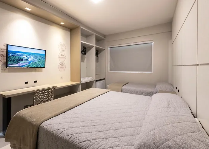 Havan se encontra próximo deste hotel de Balneario Camboriu e o aeroporto Internacional de Navegantes fica a aproximadamente 22 minutos de carro. O Concept Hotel Flat está a uma distância de 2 km da Praia Central em Balneario Camboriu. A praia central está situada a uma distância aproximada de 5 minutos a pé deste estabelecimento, enquanto o Parque Unipraias Camboriú está a aproximadamente 10 minutos de distância dirigindo.