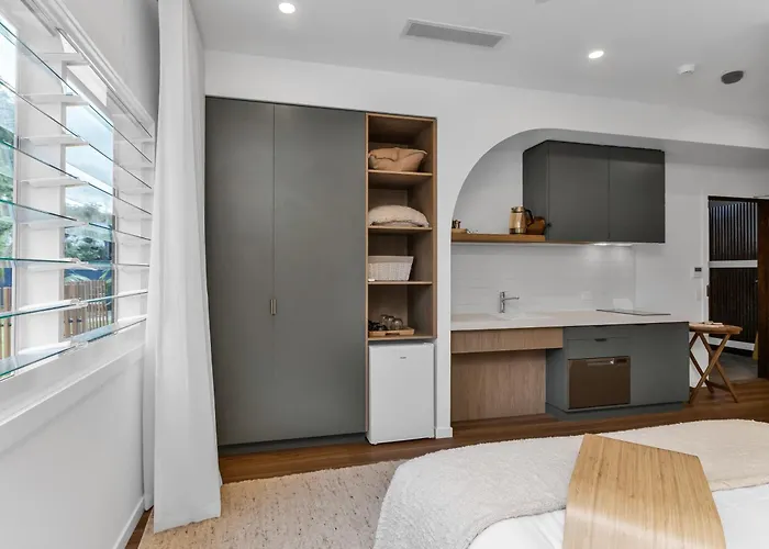 Das 5-Sterne-Hotel liegt im Viertel Main Beach, 30 Meter vom Strand Belongil Beach. Es gibt viele Sehenswürdigkeiten in der Nähe, vor allem Bushwalking ist circa 30 Minuten von der Unterkunft entfernt. Der familienfreundliche Strand liegt nur 30 Meter zu Fuß vom Hotel. Byron Community Market liegt nicht weit entfernt vom Hotel Beach Suites. Die Unterkunft ist in 10 Fußminuten Entfernung von der Busahltestelle Byron Bay gelegen.