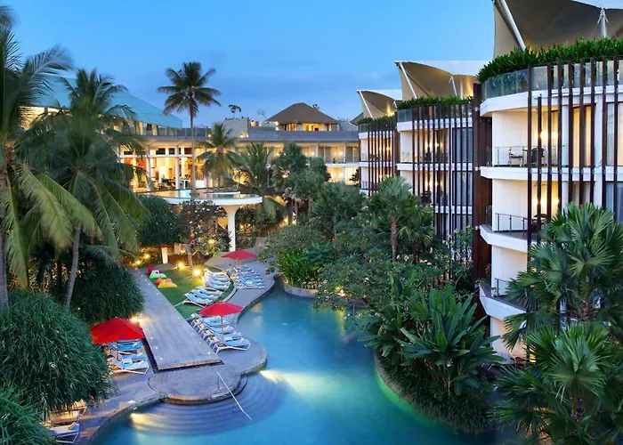 El hotel ofrece una ubicación frente a la playa a 10 minutos del aeropuerto internacional de Bali Denpasar. Entre los lugares de interés a 15 minutos en coche de este hotel se encuentra el Parque acuático Waterbom Bali.