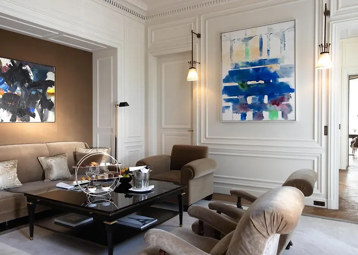 Four Seasons Hotel George V est un hôtel de 5 étoiles situé à 20 minutes de marche de la Tour Eiffel. Un Wi-Fi est offert dans les chambres et un parking est disponible sur place.
