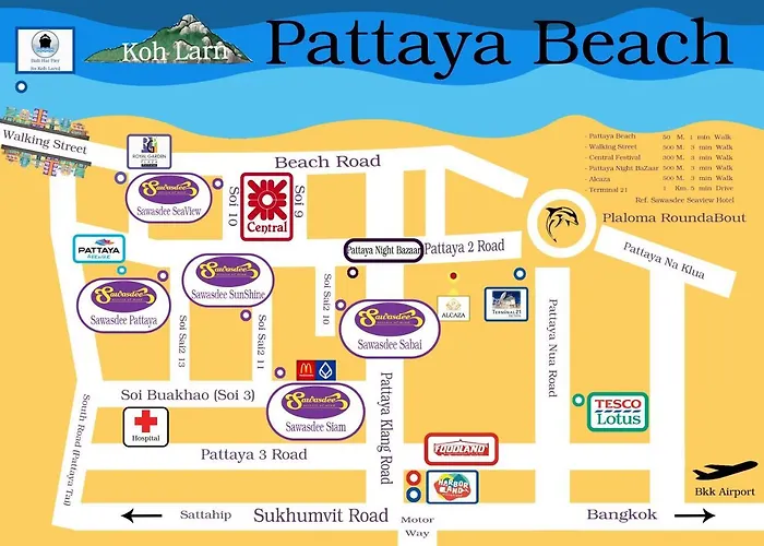 Bali Hai Pier is less than 2.2 km away. It is located 5 km from the centre of Pattaya. The local beach is 6 minutes' walk away. Royal Cliff Beach Terrace Hotel is a short ride from Mini Siam Park.