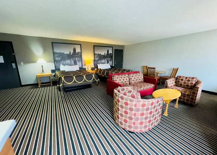 For example, Super 8 By Wyndham has more than 420 positive reviews from our visitors โ they especially liked an indoor swimming pool, ironing, and a xerox on site.