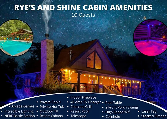Located within a 15-minute drive of Smoky Mountain Knife Works Cutlery Store in Sevierville, Ryes And Shine Bootlegger'S Cabin! Hot Tub* Pool* Arcade* Billiards *Ev * Pet Friendly Hotel offers a Jacuzzi and an outdoor swimming pool. Guests can swim in a swimming pool, while this holiday park provides views of the mountain.